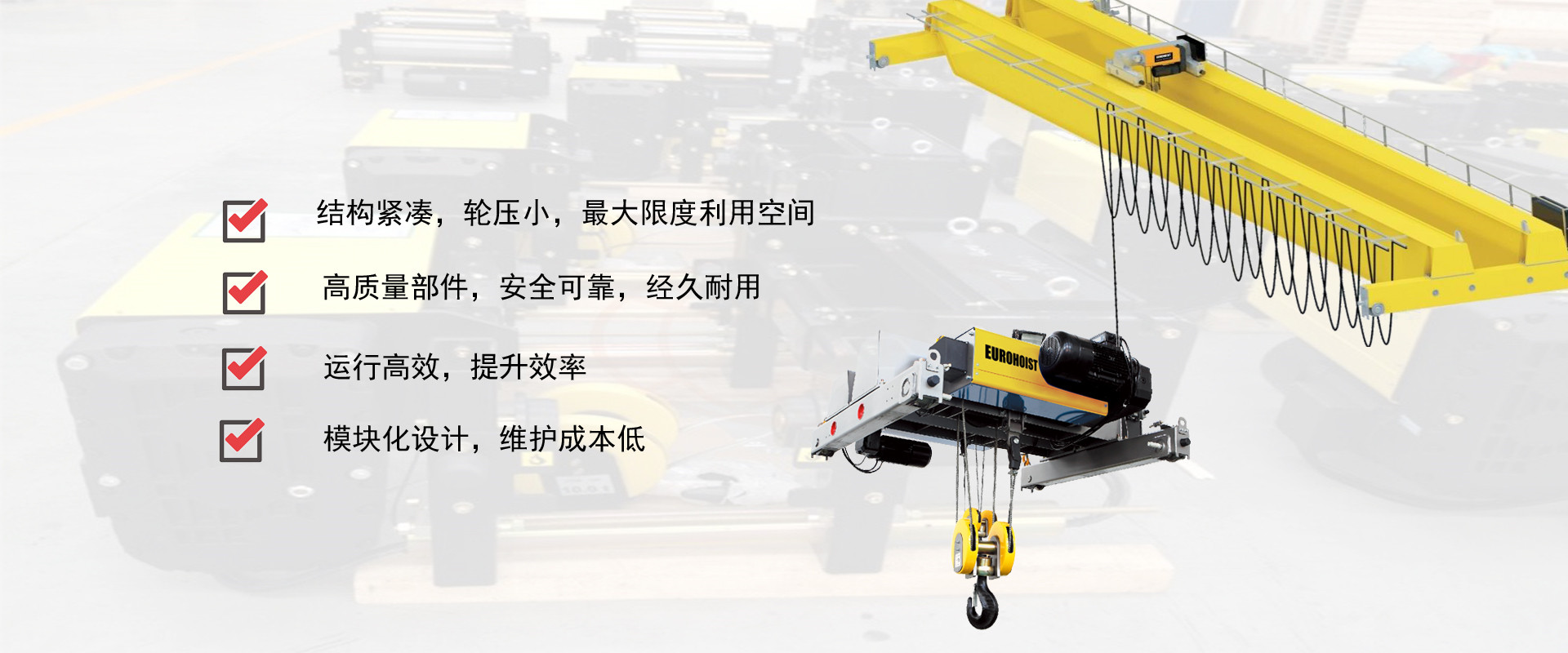 密歇爾起重機械(杭州)有限公司,作為專業的電動葫蘆和起重機及物料起重輸送系統設計、制造和銷售綜合服務商,自公司創建以來,勇于創新,追求技術進步,并依托我們的技術研發中心,現已成為國內起重機械行業的新興優秀企業。